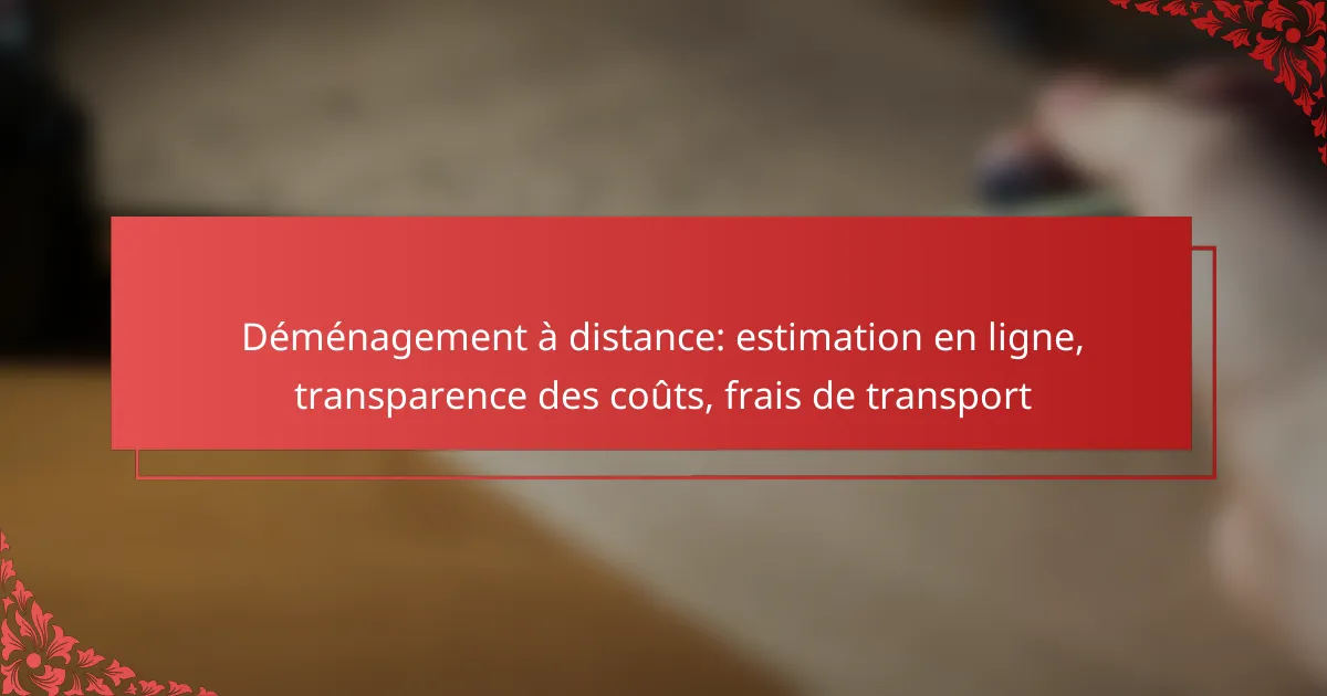 Pour estimer le coût d’un déménagement à distance, il est essentiel de prendre en compte plusieurs facteurs, tels que la distance, le volume des biens à transporter et les services supplémentaires nécessaires. Utiliser des outils d’estimation en ligne peut faciliter ce processus en fournissant des estimations basées sur des données spécifiques.