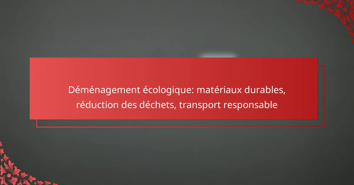 Les moyens de transport responsables pour un déménagement écologique incluent des véhicules à faibles émissions, des options de transport en commun et des services de déménagement utilisant des pratiques durables. Choisir ces alternatives permet de réduire l’empreinte carbone tout en facilitant le processus de déménagement.
