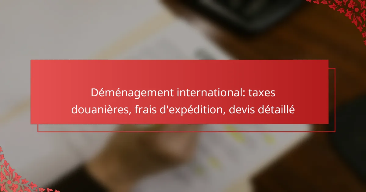 Un devis de déménagement international doit inclure plusieurs éléments clés pour être complet. Cela comprend le coût total estimé, les frais d’expédition, les taxes douanières, ainsi que les services additionnels comme l’emballage et le stockage.